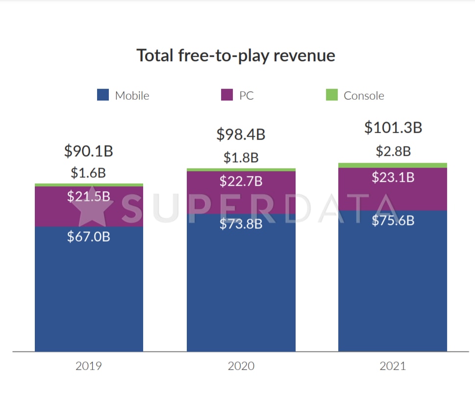 De acordo com a SuperData, o mercado de jogos digitais movimentou quase US$ 130 bilhões em 2020 — um crescimento de 12% em relação ao ano anterior. Os jogos Free-to-play foram mais uma vez os mais rentáveis, respondendo por 78% do faturamento. Já o mercado asiático sozinho corresponde a 59% do faturamento total do setor. Ainda com relação aos jogos Free-to-play, o mercado mobile viu um crescimento de 10% em 2020 correspondendo a 58% do faturamento do mercado de games. Já os jogos para PC Free-to-play tiveram receita estimada em mais de US$ 22 bilhões no ano passado, enquanto que os jogos Free-to-play para consoles fecharam o ano com um rendimento total de US$ 1,8 bilhões.