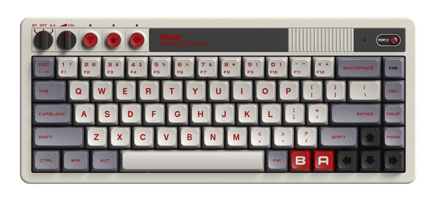 O controle Ultimate 2 Bluetooth – N40 ganhou um design em preto e cinza com botões vermelhos e um dock de carregamento no mesmo estilo do NES. Ele mantém todas as funcionalidades da versão padrão, como compatibilidade com Switch e Windows, LEDs customizáveis e botões extras. Já o teclado Retro 68 traz um corpo inteiramente de alumínio, novos switches lineares e uma bateria de longa duração. Por fim, o Retro Cube 2 recebeu melhorias como áudio estéreo, microfone embutido e carregamento sem fio.