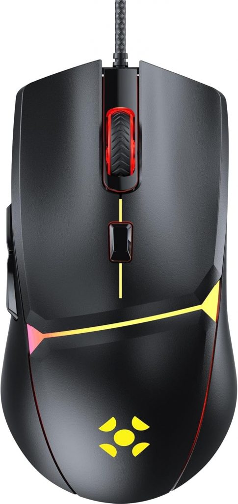 Outro produto da Fortrek que não poderia ficar de fora desta seleção com os melhores mouses gamer até R$ 100 é o Fortrek Crusader. Particularmente, eu gosto muito desse mouse, pois ele apresenta um design moderno e não exagera no RGB. Isto é, os detalhes de luz são muito bem posicionados e acabam dando um ar diferenciado para o produto. Felizmente, o Crusader não fica apenas nas aparências e ainda apresenta um sensor de até 12800dpi e cinco botões totalmente personalizáveis (com função de registro de macros). O formato do mouse ainda é um destaque e tanto e dá para sentir que ele foi feito para durar. E só para constar, há uma versão mais antiga desse mouse, mas vale mais a pena apostar na alternativa otimizada (apesar de o mouse “velho” ser mais bonito, na minha opinião, claro).