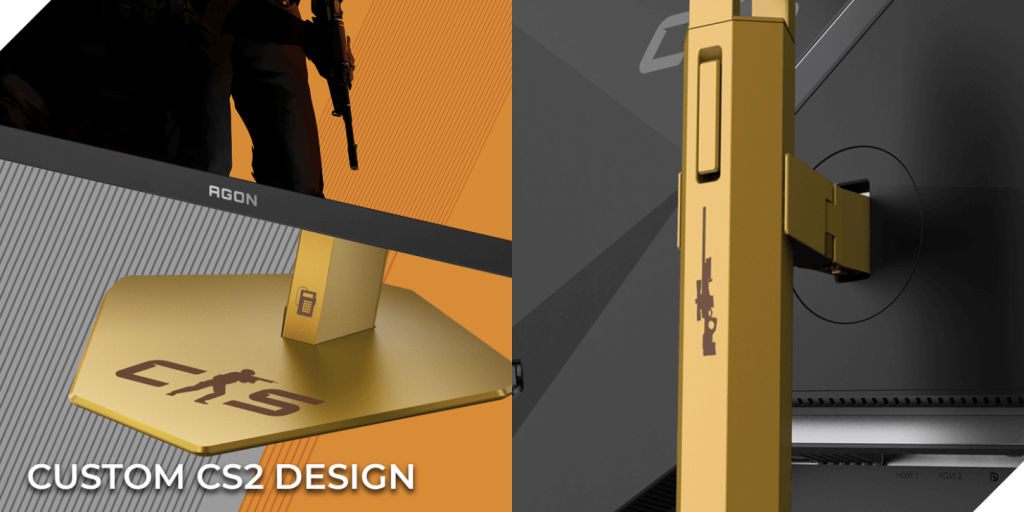 O AGON PRO CS24A se destaca por seu visual temático exclusivo, com detalhes dourados inspirados em Counter-Strike, como o ícone da C4 na frente da base e uma AWP gravada na parte traseira do suporte. Esse modelo ainda traz presets dedicados para CS2, incluindo o modo CS Mode, FPS2 e FPS3, otimizados para diferentes estilos de jogo competitivo. Já o AG246FK6 mantém todas as especificações técnicas, mas aposta em um visual mais sóbrio e tradicional da linha AGON PRO. Ambos contam com tecnologias como Motion Blur Reduction Plus (MBR+), garantindo maior nitidez visual durante movimentos rápidos — recurso essencial em jogos de ritmo acelerado.