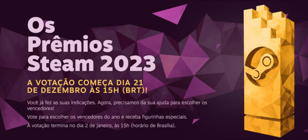 Cabe destacar que todos os players da Steam podem selecionar os seus games favoritos e só precisam ir até a página oficial da premiação, fazer o login em suas contas e registrar seus votos. Daí, é só aguardar pelos resultados. Lembrando que a votação será encerrada no dia 02 de janeiro de 2024. Não deixe de participar.