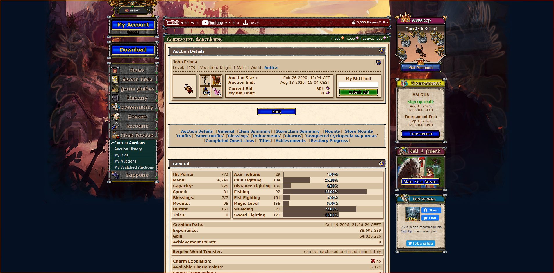 Esta semana, a Cipsoft apresentou uma mecânica de “Leilões de Personagens” que vai lhe permitir ter o controle do mercado negro de vendas e compras de contas de Tibia — prática que, embora proibida pelas regras do jogo, tem acontecido desde o princípio com muitos jogadores sendo banidos no processo. Contudo, isso deve mudar em breve com a introdução dessa nova mecânica.