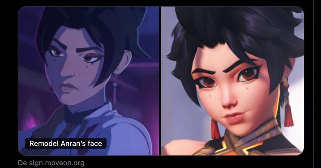 Logo após sua revelação jogável, jogadores começaram a comparar o visual da heroína com o que apareceu em um curta animado recente. Para muita gente, Anran parece mais jovem e genérica no jogo, além de lembrar demais outras personagens asiáticas, como Kiriko e Juno.