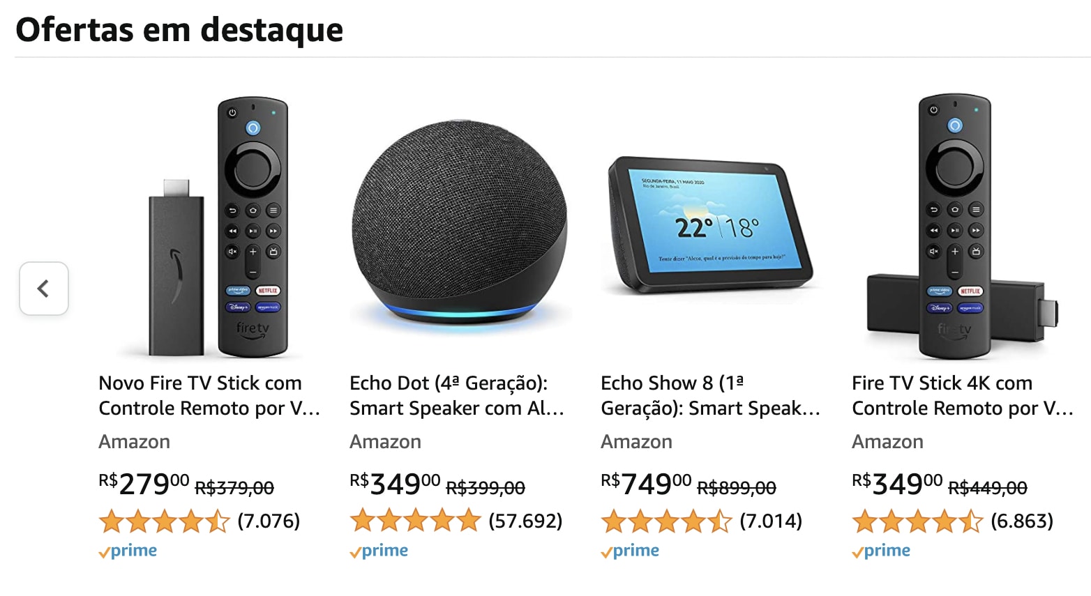 Caso você tenha uma TV que ainda não é “Smart”, uma oferta imperdível da nova promoção da Amazon é aquela relacionada com o Fire TV Stick 4K. O aparelho está com um desconto de mais de R$ 100,00 e seu nível de qualidade impressiona. Outro produto que merece a sua atenção é o Echo Dot (4ª Geração). Esse é aquele aparelho que leva a música para todos os cantos da sua casa e ainda vem equipado com o sistema Alexa, que está pronto para atender aos mais diversos comandos de voz.
