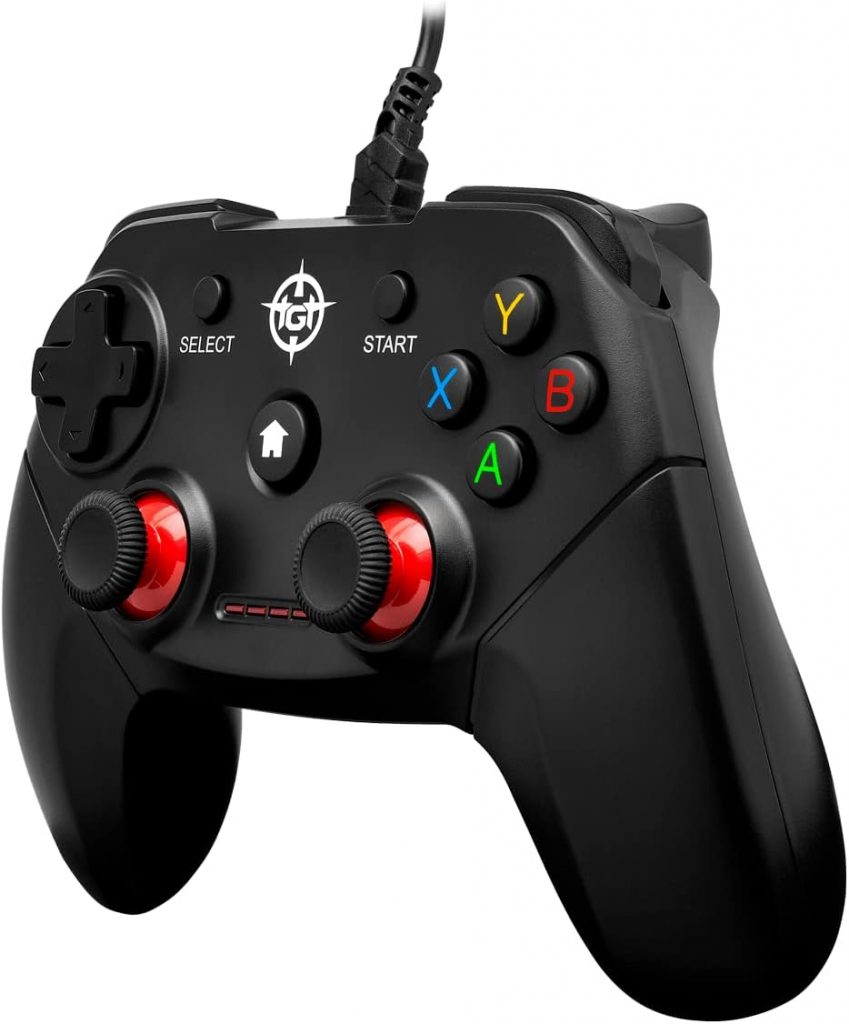 Ainda falando sobre a TGT nesta seleção com os melhores controles baratos para PC, temos o TGT T90, que apresenta um design bem arrojado e um formato que garante uma ótima pegada. O controle também se destaca por ter um revestimento que favorece a sensação tátil e o conforto, sem contar que seus gatilhos, direcionais e botões são bastante responsivos e agradáveis ao toque. Detalhe, o D-pad desse controle é muito bom e ainda temos um botão turbo, que garante a execução de comandos de forma automática. No fim das contas, o controle, que também é uma opção com fio, acaba representando a sua marca com propriedade e despontando como uma ferramenta gamer que apresenta uma ótima relação custo/benefício. Vale a pena conferir!