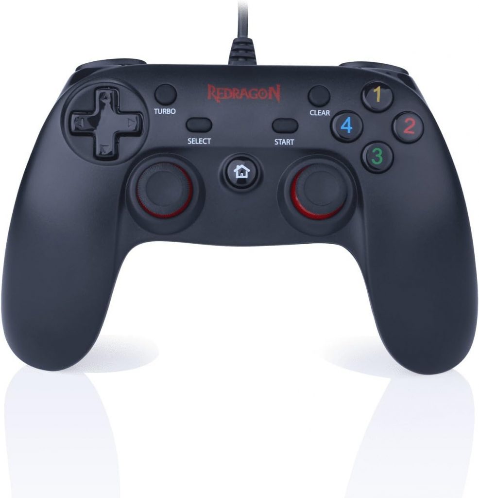 Outra marca conhecida que não poderia ficar de fora desta seleção com os melhores controles baratos para PC é a Redragon. E sim, o Saturn G807 merece uma atenção especial. Afinal, o produto apresenta um acabamento muito bom e fica claro que sua estrutura foi feita para durar. O layout segue o padrão dos consoles PlayStation e podemos dizer que a pegada é favorecida por um formato bem interessante e pelo ótimo revestimento. O D-pad é uma peça única e isso pode não agradar a certos usuários, mas trata-se de uma questão de gosto. Ainda assim, os analógicos, os gatilhos e os botões respondem de forma eficiente e garantem uma ótima sensação tátil. E como ainda temos um botão turbo, podemos dizer que esse controle com fio é uma opção bem completa e eficiente.