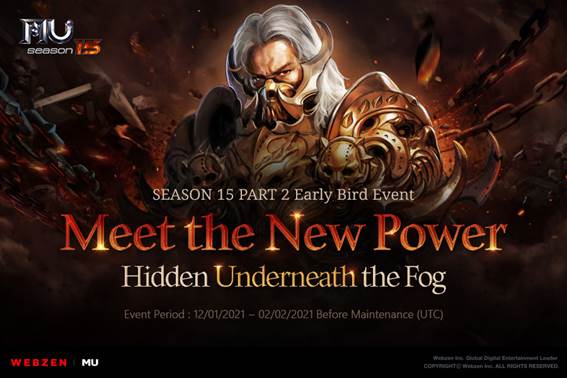 A Temporada 15 Parte 2 é a primeira grande atualização de Mu Online de 2021. A atualização vai trazer ao título várias novidades, incluindo um novo campo de batalha, Icarus de Fogo Ardente, novos itens, novos eventos especiais, e muito mais. Para começar, os jogadores que realizarem o pré-registro podem resgatar como recompensa Ingressos para o Gold Channel de 3 dias e Bless of Light (Bound). Além disso, os jogadores poderão receber itens de bônus para ajudar a tornar os personagens mais fortes, contendo Wizard’s Ring e Talisman o Ascension II por um dia e Bless of Light (Bound).