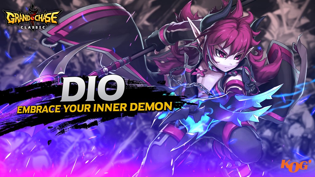 No release assinado pela KOG Games, “Dio” foi descrito como um demônio de sangue nobre, que consegue invocar uma foice extremamente poderosa, com vistas a levar a destruição até os inimigos. Além disso, parece que o gameplay com o personagem será um pouco diferente, já que suas ações vão consumir uma barra de AP (Action Points) e não de MP (Mana Points) como acontece com os outros personagens. Com isso, o player que optar por usar esse “herói” terá maior liberdade para obter energia para os golpes e usar habilidades de acordo com as situações de cada conflito.