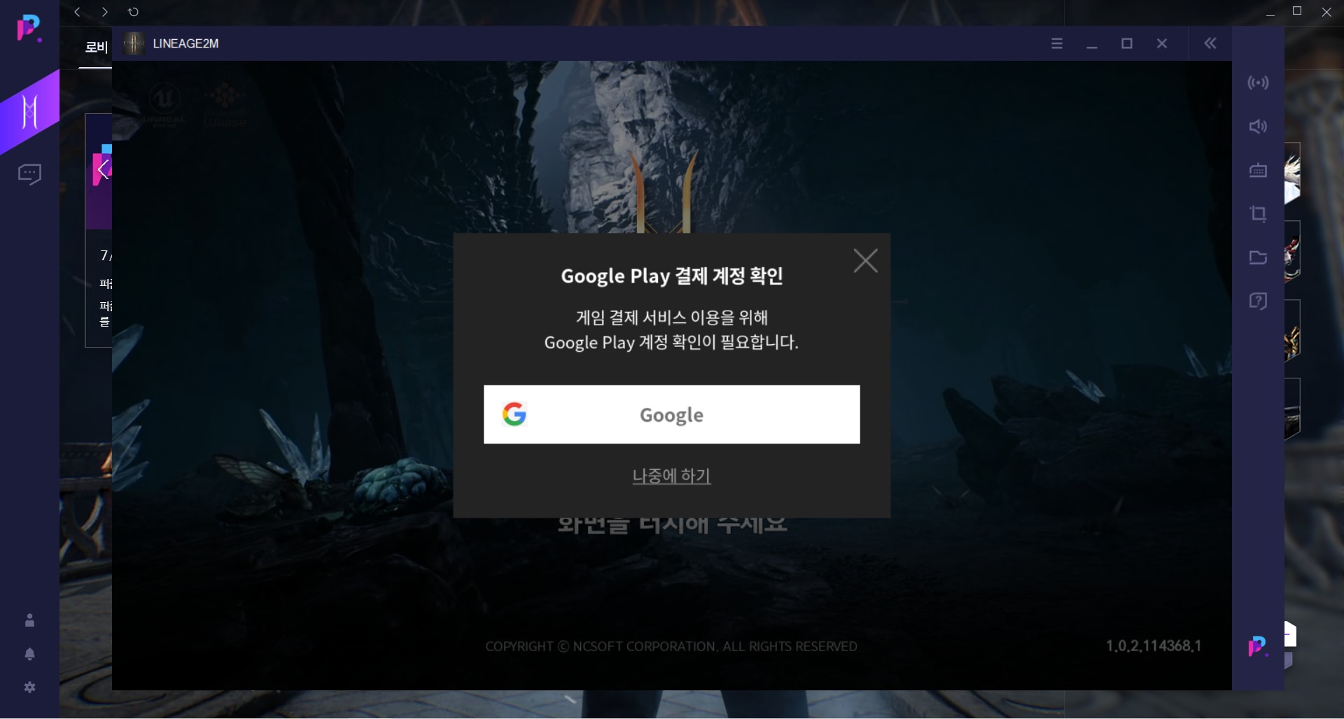 Com o lançamento do game, a NC também liberou o download em Beta do Purple, emulador de Android para PC projetado exclusivamente para Lineage 2M. O emulador promete uma experiência otimizada com perfomance e gráficos melhorados para PC, incluindo suporte cross-play entre PC e dispositivos móveis.