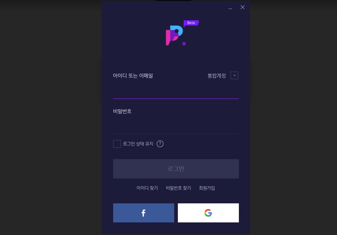 3. Após instalado, abra o aplicativo (clique no atalho do Purple na Área de Trabalho) e realize o login. Você pode escolher se conectar com sua conta do Facebook ou Google.