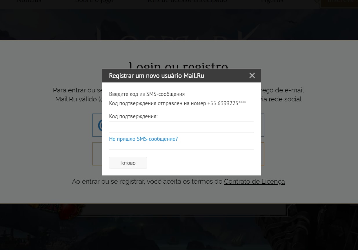 4.Selecione o código DDD do Brasil e insira seu número de telefone celular e clique no botão azul.