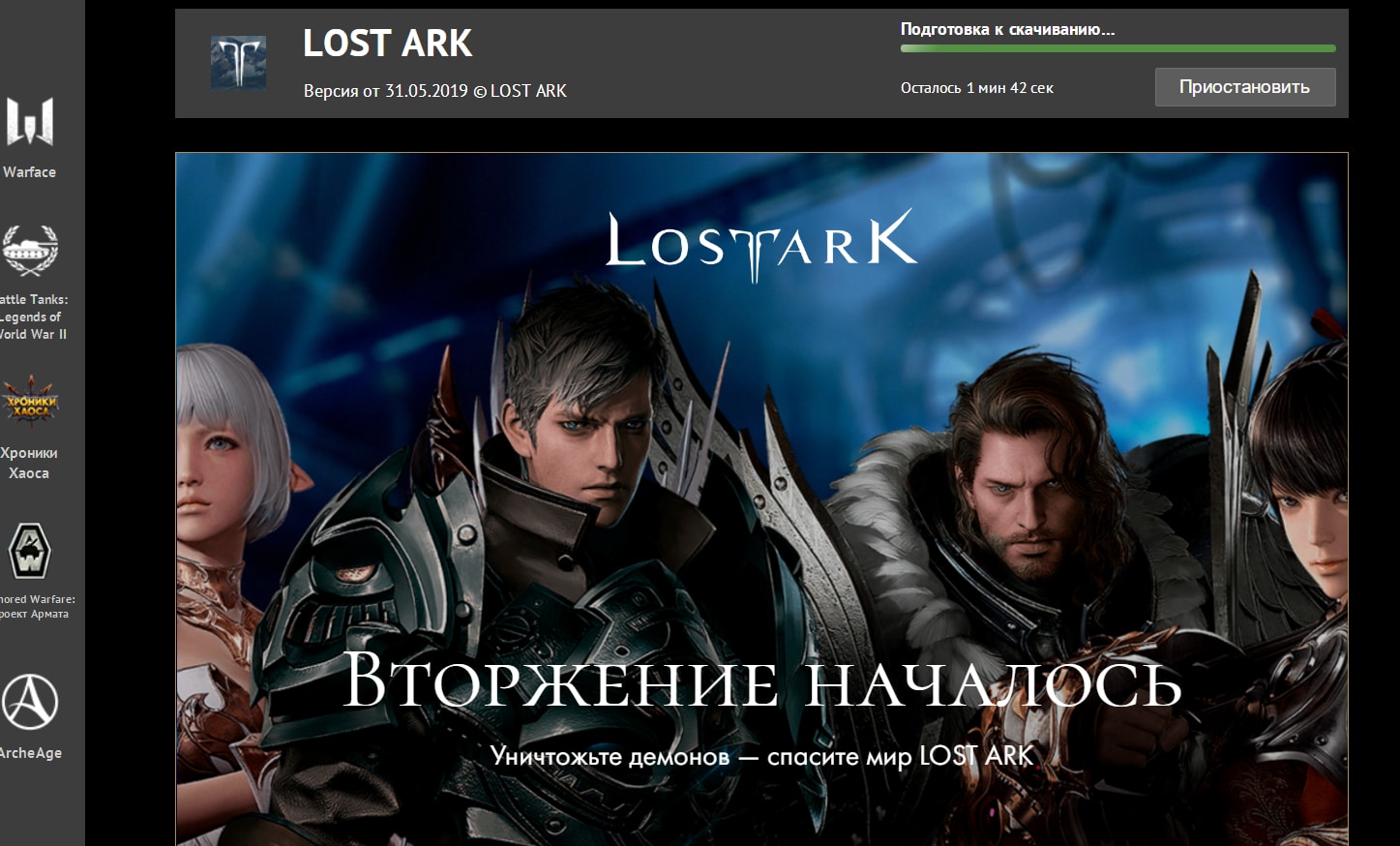 A publisher My.ru anunciou o lançamento de uma versão demo de Lost Ark na Rússia permitindo a todos os jogadores interessados jogá-lo até o dia 6 de junho sem necessidade de comprar pacotes de fundador.