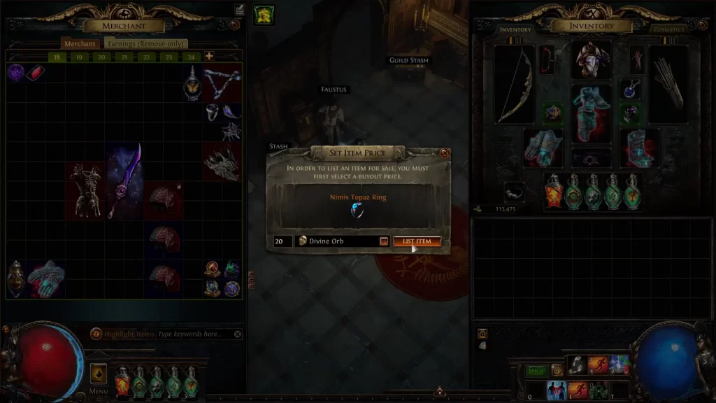 Além das gemas, o update adicionará mais de 20 novos itens únicos, três tipos inéditos de varinhas (Explosiva, Cinética e Somática) e seis novos tipos de anel, todos com propriedades específicas da liga. Novos orbes e implantes reforçam o sistema de criação, introduzindo o conceito de Implantes Natimpuro, capazes de alterar ou corromper enxertos. Outra grande novidade é o Comércio Assíncrono, que finalmente permitirá negociar diretamente dentro do jogo, mesmo offline. O sistema, administrado por Faustus, facilita as trocas e dá mais autonomia aos jogadores na economia interna do game.