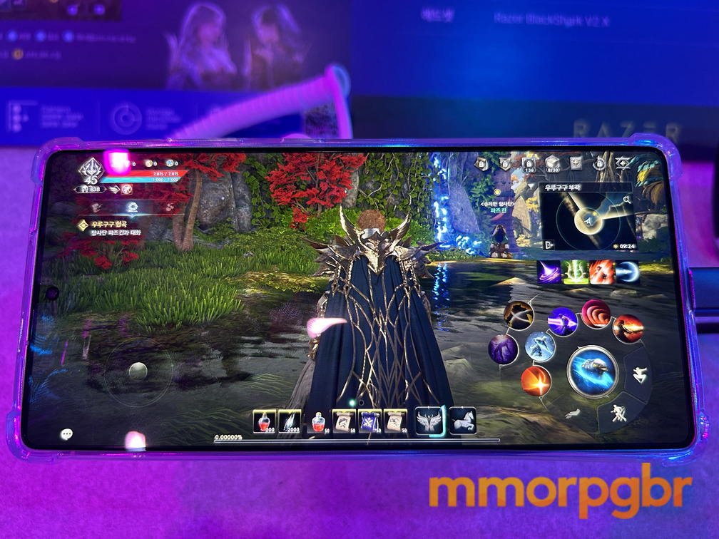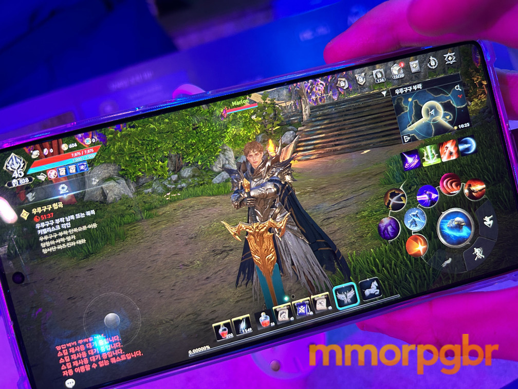 Quando cheguei ao estande — sendo um dos primeiros da fila — a versão mobile de Aion 2 parecia não atrair tanta atenção dos visitantes, mas ainda assim oferecia uma experiência sólida. A demo de 20 minutos colocava o jogador na mesma dungeon da edição para PC, com gráficos competentes, embora naturalmente mais simples do que os da versão desktop. Durante o teste, tentei acionar o autoplay pela lista de missões, mas um aviso indicou que a função não estava disponível para aquela quest, sugerindo que o recurso existe no jogo, mas estava desativado para certos conteúdos na demonstração.