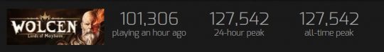 Apesar dos problemas de conexão e bug, para citar somente alguns, o game da Wolcen Studio teve pico recorde de 127.542 jogadores online neste domingo, batendo a marca de Path of Exile de 123.462 players online simultaneamente. Wolcen: Lords of Mayhem precisou de apenas 4 dias para bater a marca estabelecida por Path of Exile no Steam, que atingiu o seu maior pico depois de 4 anos em novembro de 2018.