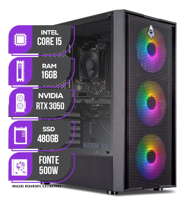 Colocando um ponto final nesta seleção com PCs baratos para jogar jogos leves, temos uma máquina um pouco mais arrojada. Trata-se de um PC Gamer Mancer que apresenta um processador Intel Core i5 da 10ª geração, 16GB de memória RAM, 480GB de SSD e uma GPU Nvidia GeForce RTX 3050 (com 6GB de memória de vídeo dedicada). Obviamente, essa é a opção mais cara desta seleção, mas, se formos parar para analisar com cuidado, a relação custo/benefício aqui é realmente muito boa (especialmente se você correr para aproveitar o belo desconto). Enfim, o fato é que essa máquina roda os jogos mais populares do momento com tranquilidade e garante experiências gamer muito boas. Logo, ela é a opção perfeita para fechar esta lista no mais alto nível.