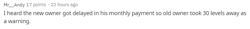 Mas segundo um usuário do Reddit, o que aconteceu foi que o comprador da conta tinha atrasado o pagamento mensal, então o antigo proprietário (provavelmente quem criou a conta), decidiu “punir” o outro jogador como forma de aviso. Vale lembrar que comercializar contas infringe as regras do jogo.