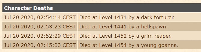 Há alguns dias, Crimsix Tanagaiola, Elder Druid do servidor Gentebra criado em 2011 e 9° jogador com level mais alto de Tibia, teve quatro mortes dolorosas em apenas 10 minutos — algo realmente improvável de acontecer, ainda mais para um jogador experiente e de level tão alto no jogo.