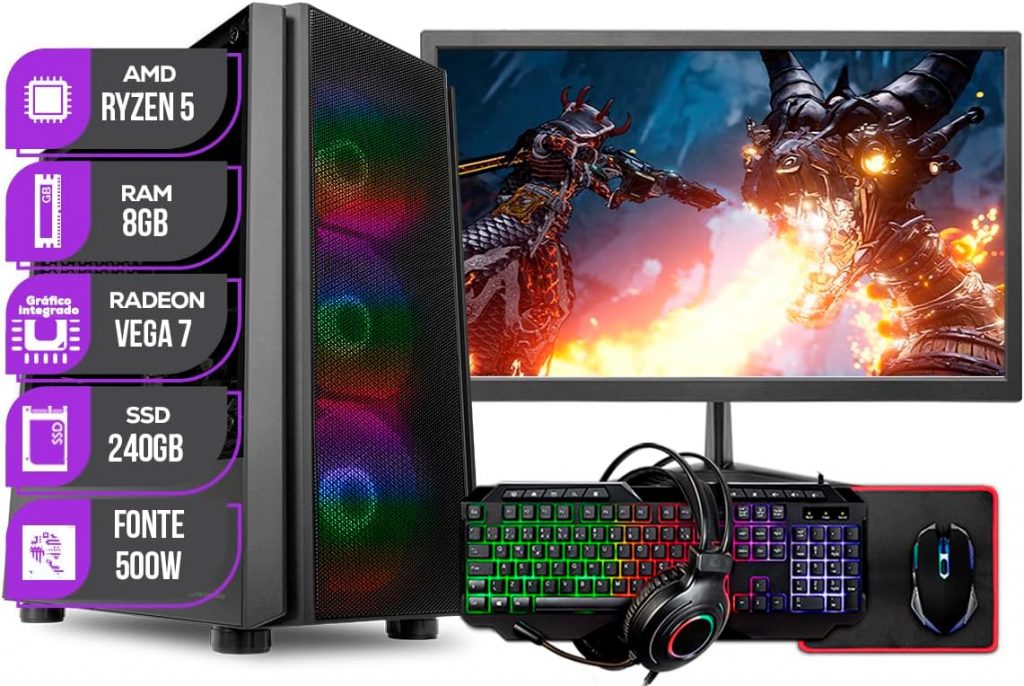 O PC também inclui 8GB de memória DDR4 e um SSD de 240GB, garantindo inicializações rápidas e tempos de carregamento curtos para jogos leves e aplicativos. O kit de periféricos, composto por um teclado gamer, mouse gamer e headset gamer, aprimora a experiência de jogo, oferecendo funcionalidades adicionais para os jogadores casuais. Embora seja mais adequado para jogos menos intensivos em recursos, este PC Gamer Completo Mancer oferece uma relação custo-benefício sólida para aqueles que buscam um sistema acessível para suas necessidades de entretenimento digital.