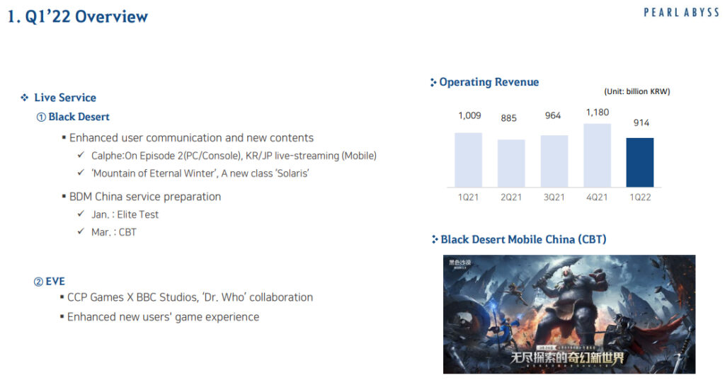 Em linhas gerais, podemos dizer que o ano de 2022 não começou bem para a Pearl Abyss. O relatório financeiro confirmou que a desenvolvedora registrou uma grande queda (22,5%) em sua receita, na comparação com o último trimestre de 2021. Além disso, no que diz respeito ao relatório anual, o ano de 2021 foi 9,4% pior do que o ano de 2020, deixando claro que a desenvolvedora não está em sua melhor fase (com Black Desert Online e EVE Online ficando poucos pontos acima do satisfatório).