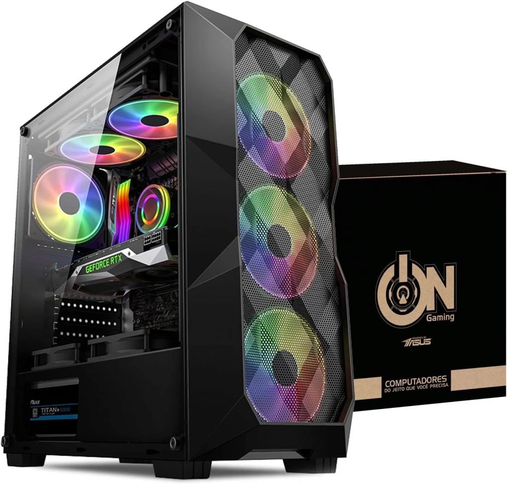 Como mencionado anteriormente, o PC Gamer Ongaming conta com um conjunto de hardware capaz de rodar jogos pesados, isso porque é composto por um processador Ryzen 5 5600G, que é considerado um dos melhores processadores da AMD por oferecer uma boa performance e não ser tão caro; memória RAM de 16GB, que é o recomendável para realizar tarefas e rodar jogos com gráficos mais exigentes; e a placa de vídeo Nvidia Geforce RTX 3050, que surge como uma boa escolha para jogos em 1080p (Full HD). Com esse conjunto, o PC pode rodar a maioria dos jogos atuais em configurações gráficas médias a altas, incluindo jogos como Assassin’s Creed Valhalla, New World e mais.