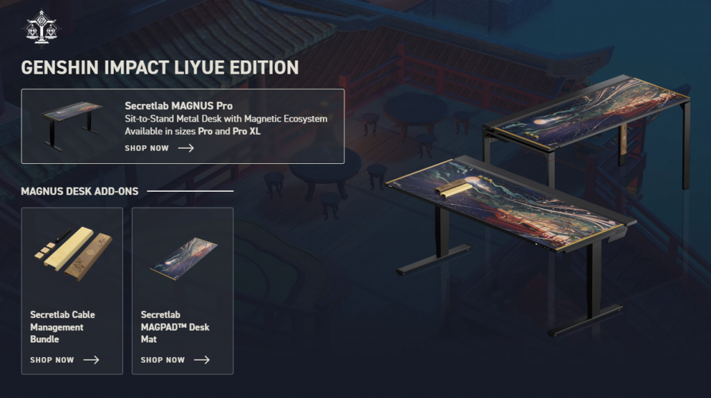 A Secretlab anunciou oficialmente a Genshin Impact Liyue Collection, uma nova linha de móveis gamer desenvolvida em colaboração com a HoYoverse. A coleção traz duas versões limitadas da renomada cadeira TITAN Evo 2022, inspiradas nos personagens Xiao e Ningguang, além de uma mesa MAGNUS Pro com temática da região de Liyue.