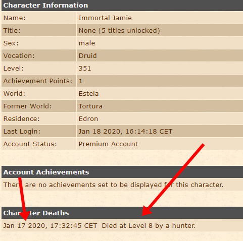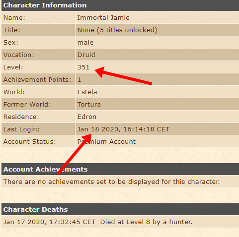 Jamie comprou o kill, entre outros, de um jogador polonês de nível 791, no qual contribuiu e muito para que o seu personagem chegasse ao nível 351 tão rapidamente. Talvez esse seja o mais rápido aumento de nível da história de Tibia.
