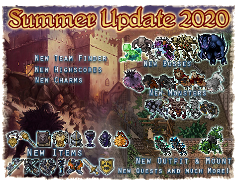 O Summer Update deste ano, liberado ontem nos servidores de Tibia, introduziu uma nova história centrada em torno da Order of the Lion, novas áreas de caça que podem ser desafiadoras até para jogadores acima do lv 1000, novos monstros com mecânicas únicas e dificuldade ainda maior, novos chefes com loots incríveis, localizador de equipes, ranque global de jogadores com melhores pontuações e conquistas, novas skins, client gravável (capacidade de exportar suas próprias configurações) e mais.