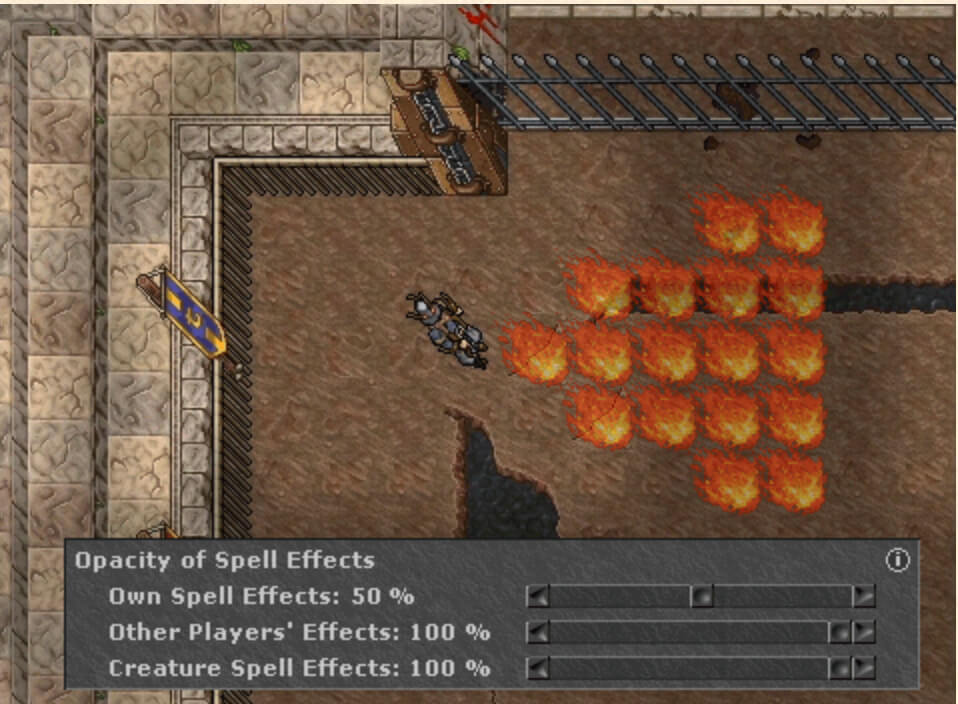 A novidade chegará por meio de um menu dedicado em Gráficos → Efeitos, dentro das opções do jogo. Serão três controles deslizantes distintos para personalizar a opacidade das magias do próprio jogador, de outros personagens e dos monstros, variando de 0% a 100%. Segundo a desenvolvedora, o objetivo é oferecer uma visualização mais nítida e reduzir a poluição visual nas caçadas. O recurso será lançado como parte do Winter Update.