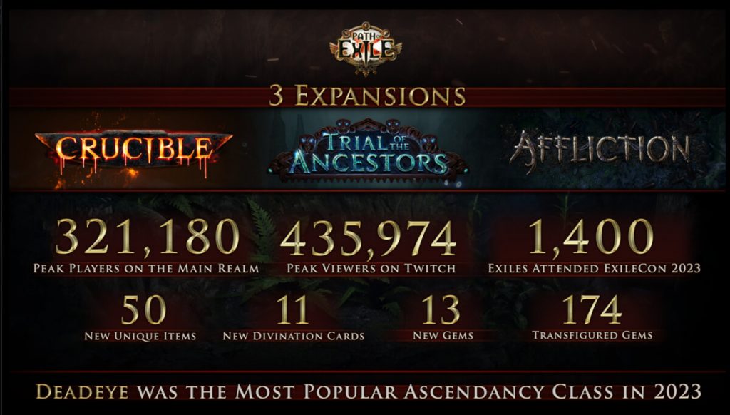 Antes de fechar o ano passado, o pessoal da Grinding Gear Games resolveu liberar uma espécie de retrospectiva, com vistas a apresentar alguns dos resultados alcançados pelo ótimo Path of Exile. E sim, parece que 2023 foi um ano excelente para o jogo. Afinal, alguns recordes bem interessantes foram registrados e acabaram deixando os devs ainda mais motivados para continuar trabalhando em novidades… vamos dar uma olhada nos dados?