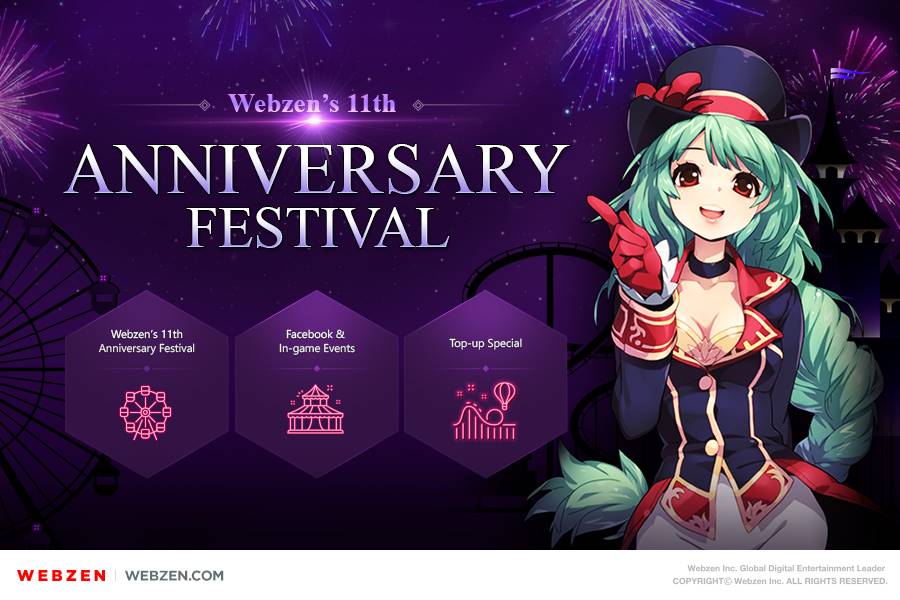 A Webzen está celebrando o 11° Aniversário do seu portal de jogos, Webzen.com, com uma série de eventos em seus jogos Mu Online, C9, Flyff e Rappelz. No portal está sendo realizando um evento com temática de parque de diversões para a coleta de W-steps, no qual você pode conferir aqui.