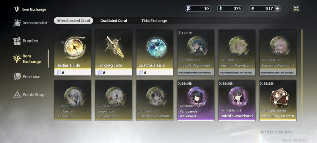 Para conseguir Forging Tides, a moeda mais rara entre as três, você precisa comprá-la no menu de trocas de itens do jogo, chamado “Item Exchange”, disponível nas seções de Aftershocked Coral, Oscillated Coral e Tidal Exchange. Para adquiri-las, é necessário acumular quantidades específicas de Afterglow Coral, Oscillate Coral e Astrite.