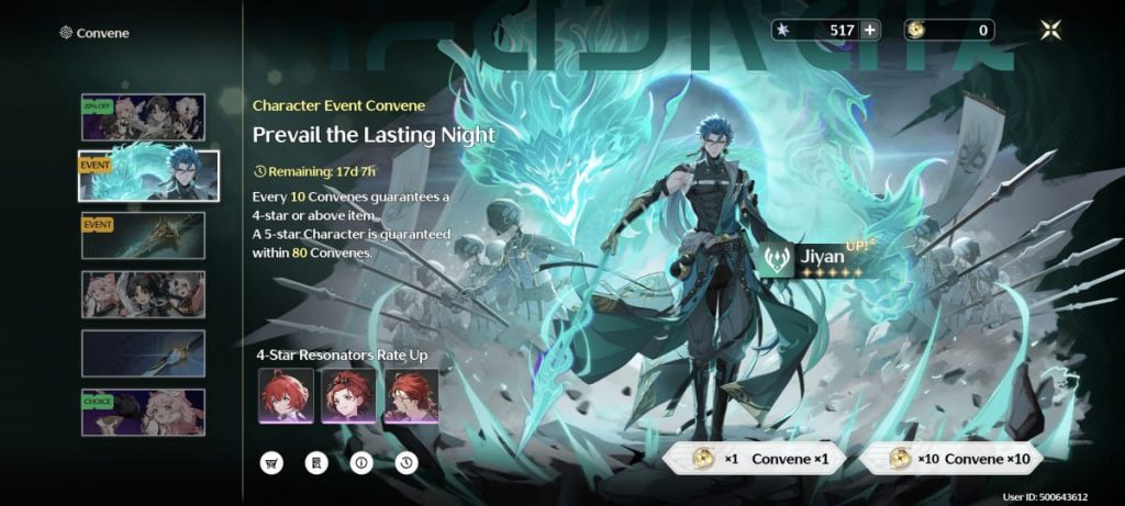 Com Radiant Tides, você poderá adquirir invocações para Convocações de Eventos de Personagem rotativos, como o Prevail the Lasting Night, que foi lançado apresentando Jiyan.