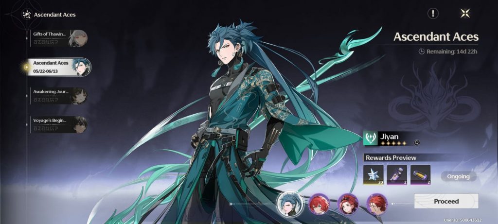 No evento Ascendant Aces, os jogadores podem usar equipes compostas por Resonators experimentais para superar estágios específicos. Os Resonators experimentais, ou seja, aqueles que ainda não foram desbloqueados, podem ser empregados em níveis particulares e equipados com conjuntos pré-selecionados de armas e Ecos, que não podem ser alterados. As recompensas incluem Astrite, Advance Resonance Potion, Advance Energy Core, Medium Resonance Potion, Shell Credit, e muito mais.